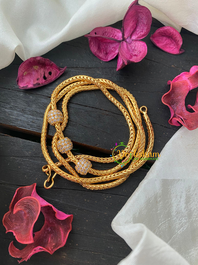 Traditional AD Stone Mogappu Chain-White-Round 2– stone studded round -3 ball mugappu/ Mogappu chain.