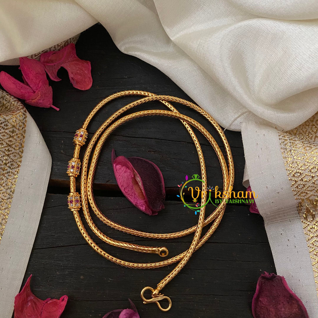 Traditional AD Stone Mogappu Chain-Hollow 3Stone layered mogappu -White Red White AD stone studdedl mugappu/ Mogappu chain.