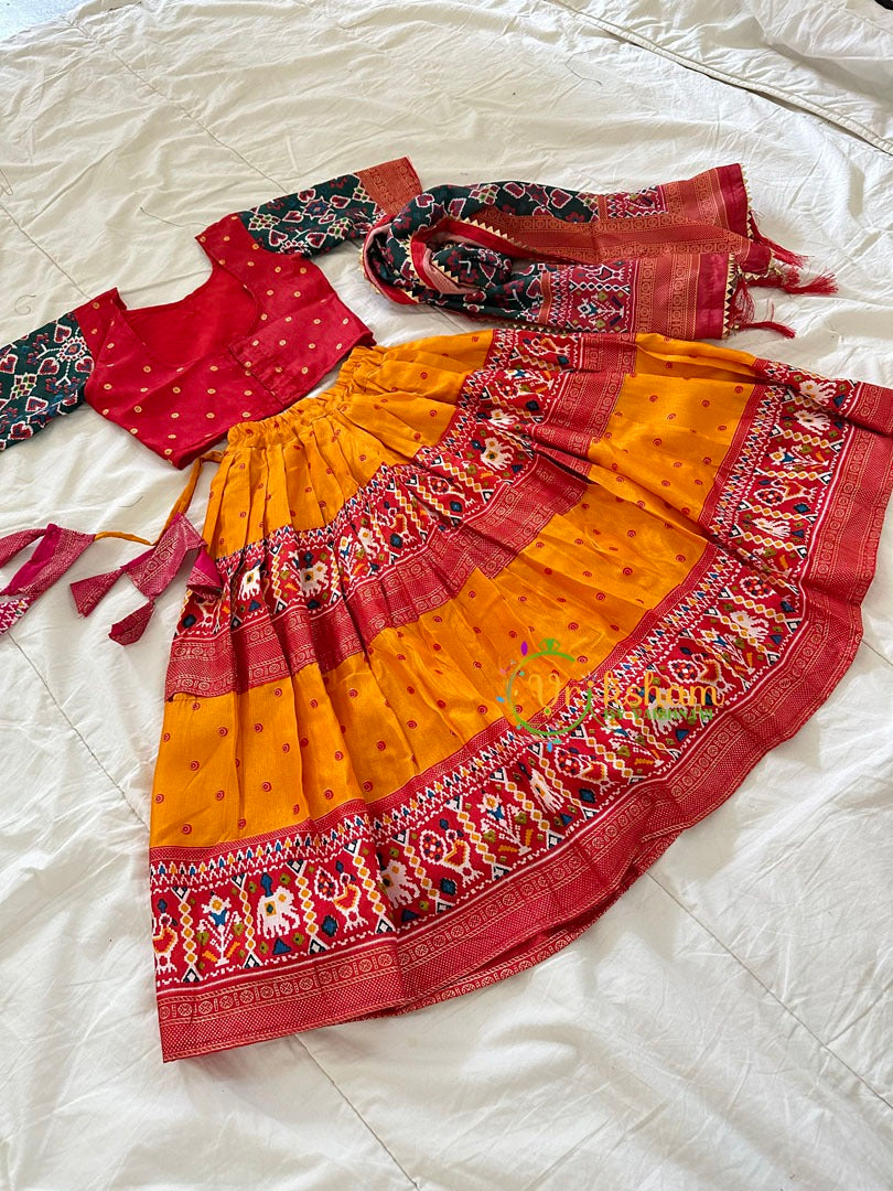 Red and Yellow Indian Traditional Girls Lehenga Set– Festive wear dress set - consists of top, skirt and duppata for girl kids and teens.
