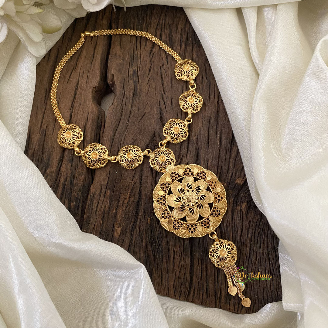 Traditional Gold Look Alike Kerala Style Short Neckpiece -Traditional Kerala Temple jewelry- NO STONE NECKPIECE- pendant short neckpiece.