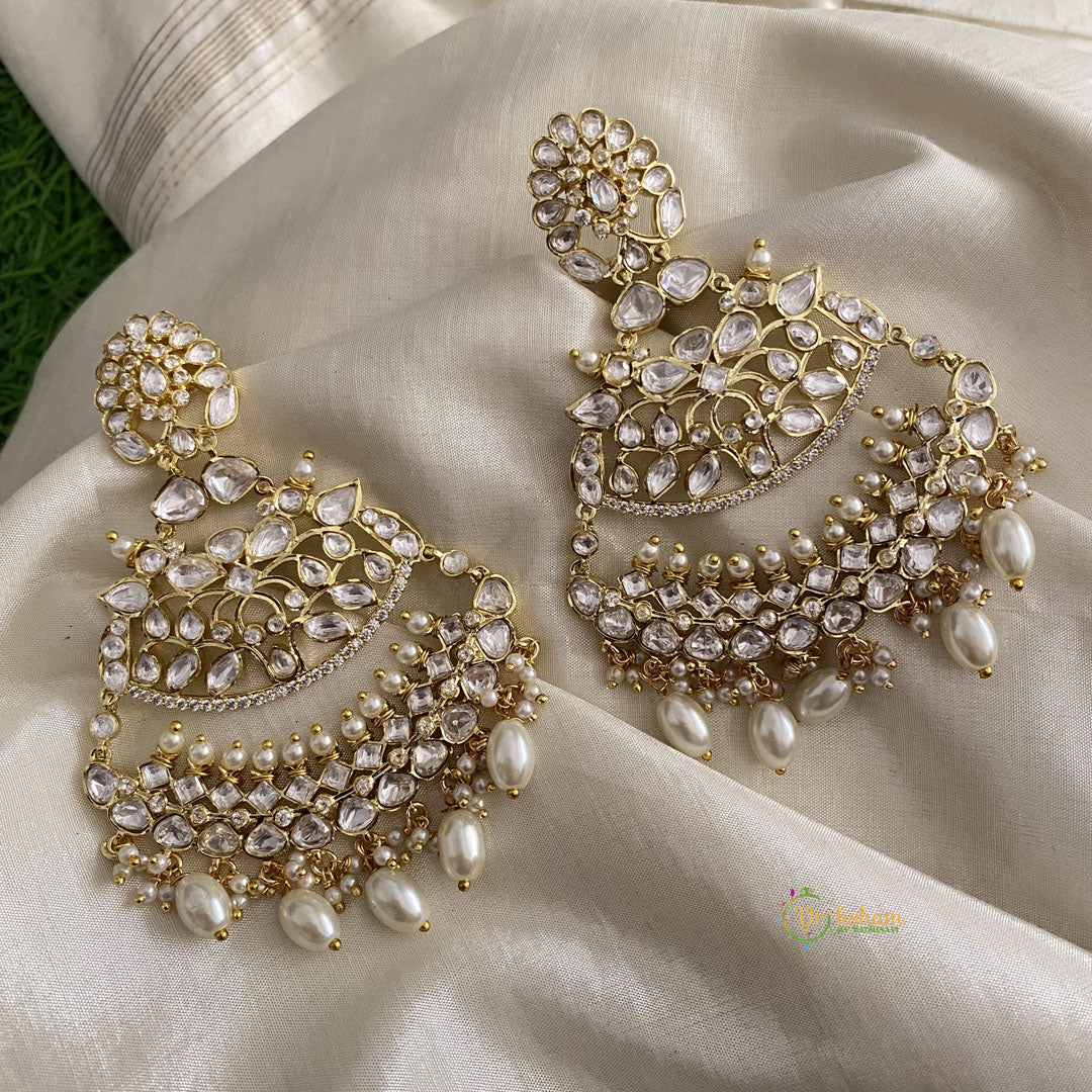 Traditional Kemp Earrings -White Pearls & Bead- The Traditional Kemp earrings studded with white stones and white pearls finish to slay your pretty occasions.