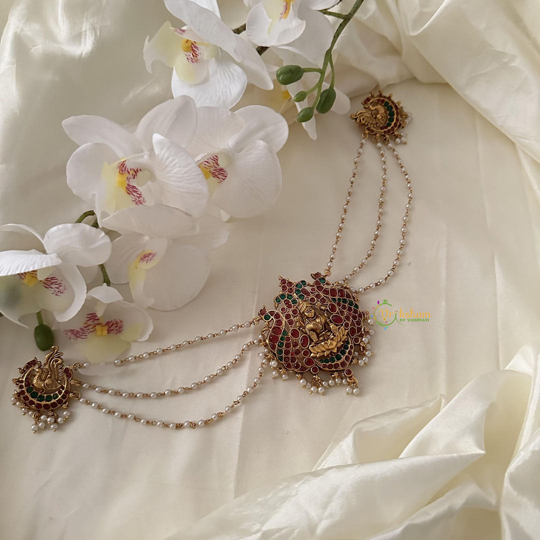 Complete your traditional Indian look with our exquisite Traditional Lakshmi Jada Billai featuring intricate pearl detailing. This beautiful hair accessory will add an elegant touch to your ensemble and bring out your inner goddess. Embrace luxury and sophistication with our Traditional Lakshmi Jada Billai.