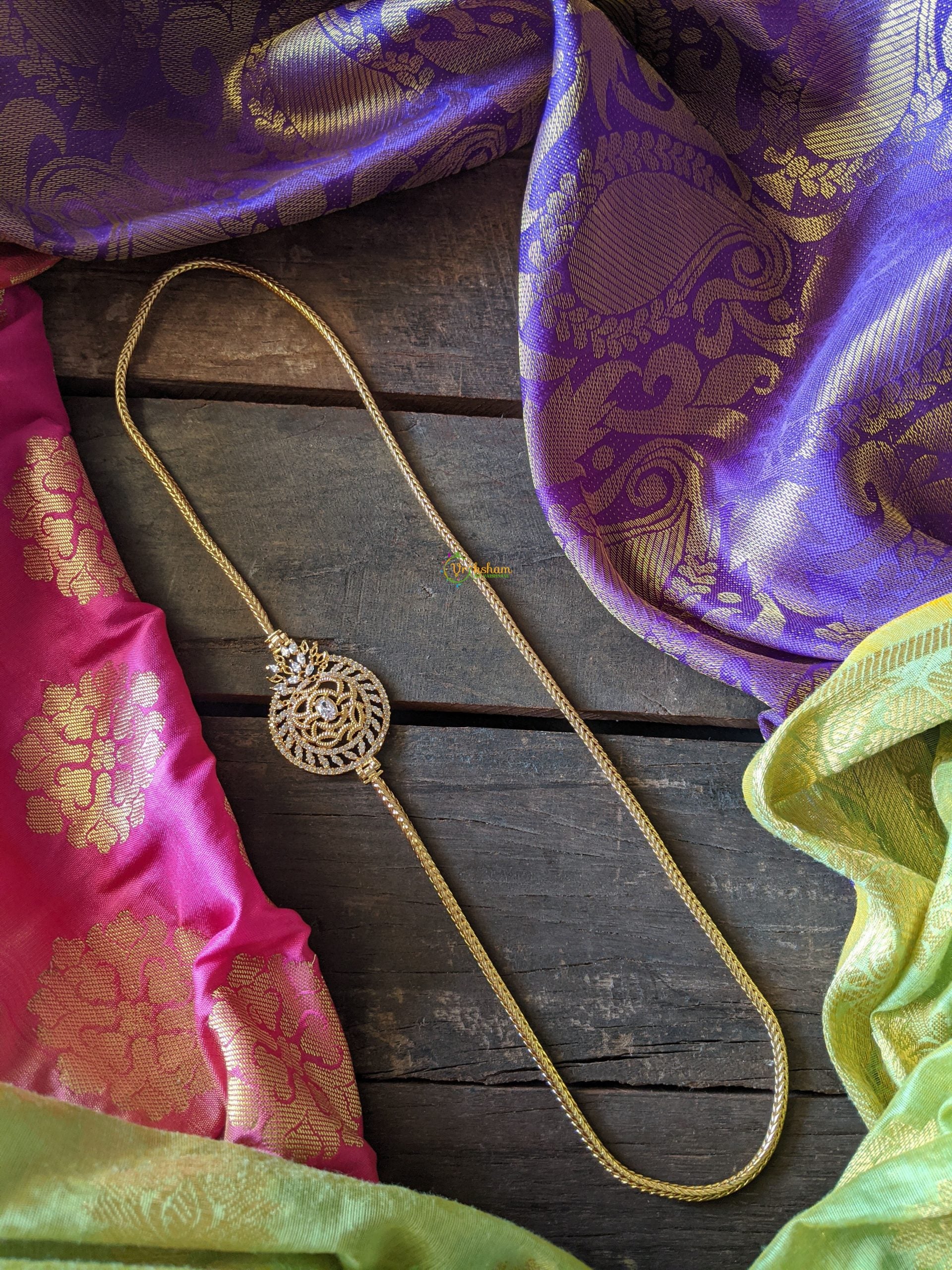 Traditional white AD stone Mugappu Chain - geometric circle pattern with white ad stone.