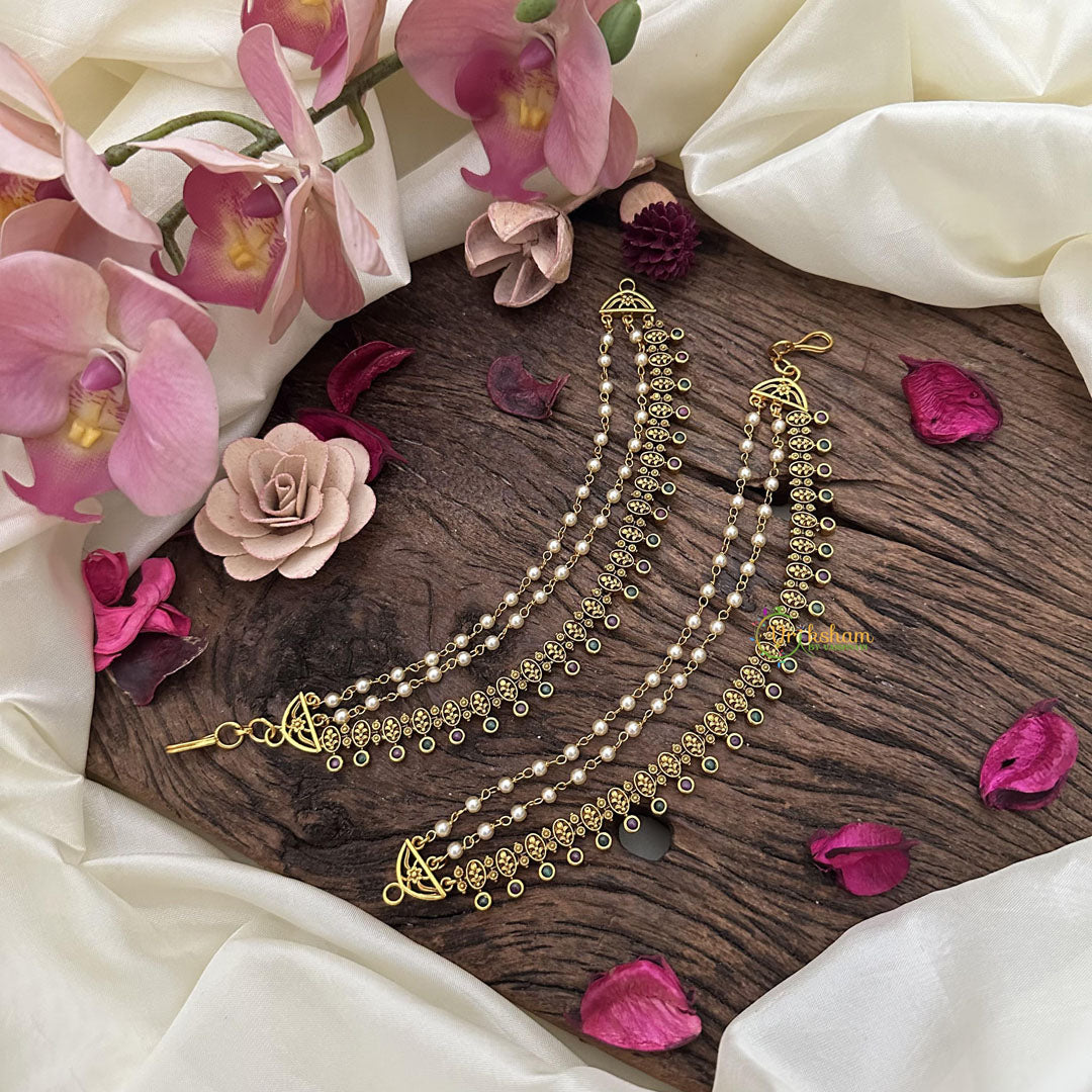 Experience the luxury and elegance of our Trendy 3 Layered Red Green Maatil. With three layers of intricately designed gold, this maatil exudes sophistication and exclusivity. Add a touch of opulence to any outfit and make a statement wherever you go. Elevate your style with this stunning piece.