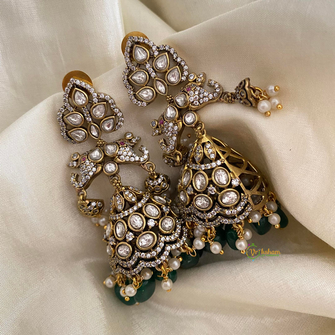Victorian Diamond Jhumkas - festive Jhumkas - Victorian Diamond Earrings -semi precious stone set jhumkas.