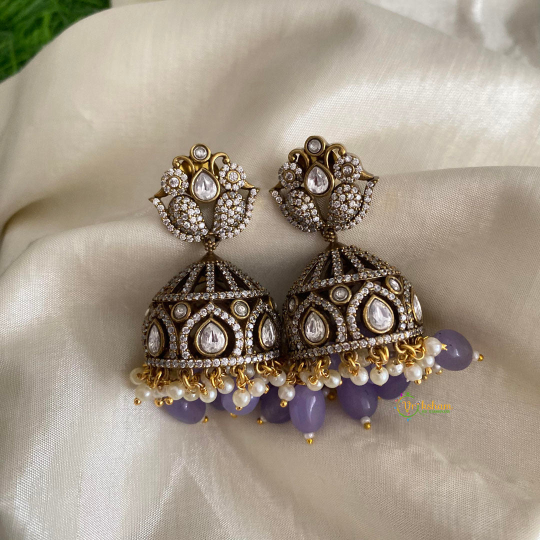 Trendy Purple Dual Parrot Victorian Diamond Jhumkas-Pearls & Beads-VV1269