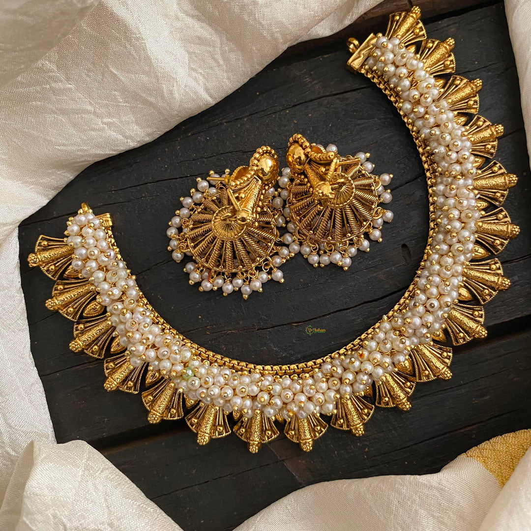 MAKE MATERIAL - This Choker is made of Copper and brass with imitation golden or white pearls.