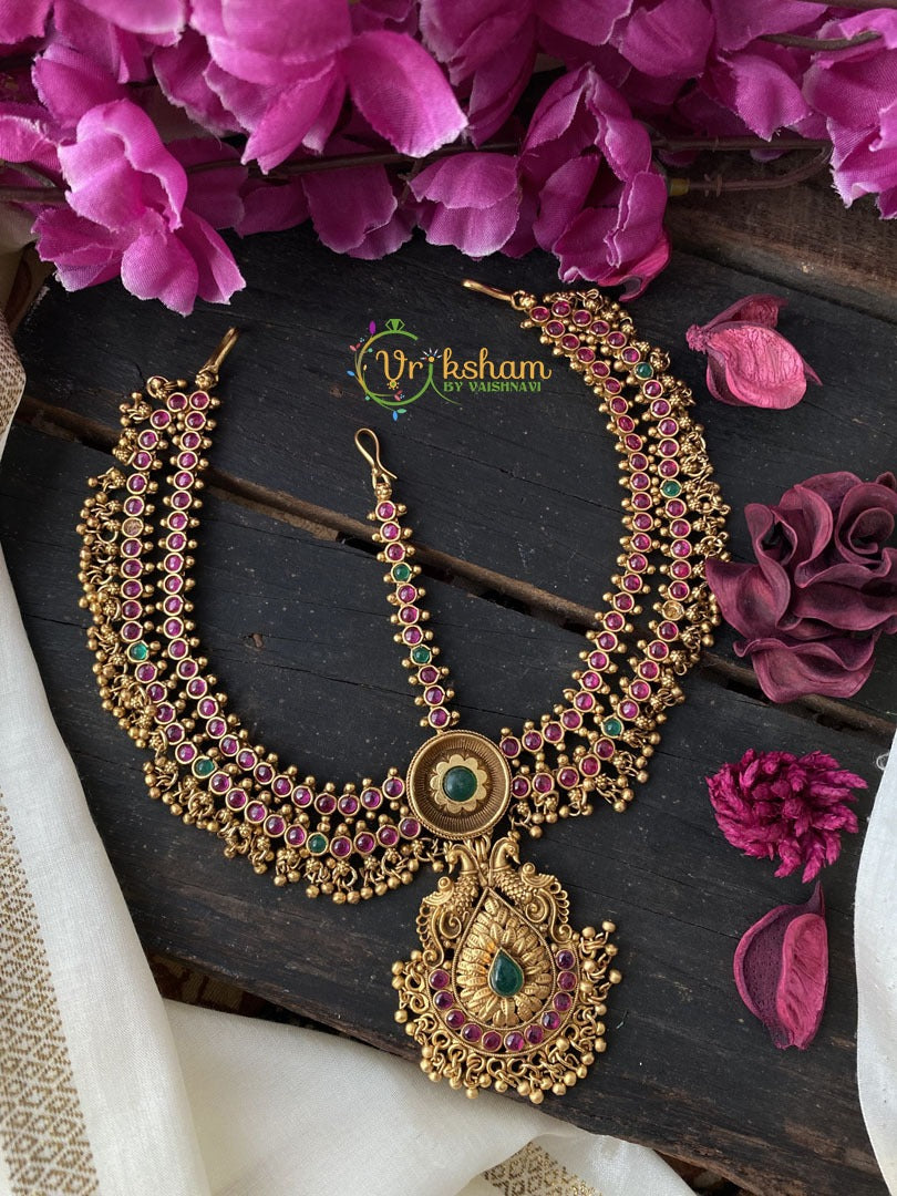Two Layered Kemp Maang Tikka – This is two layered Double Side Tikka with Red & Green stones and ghungroo finish.
