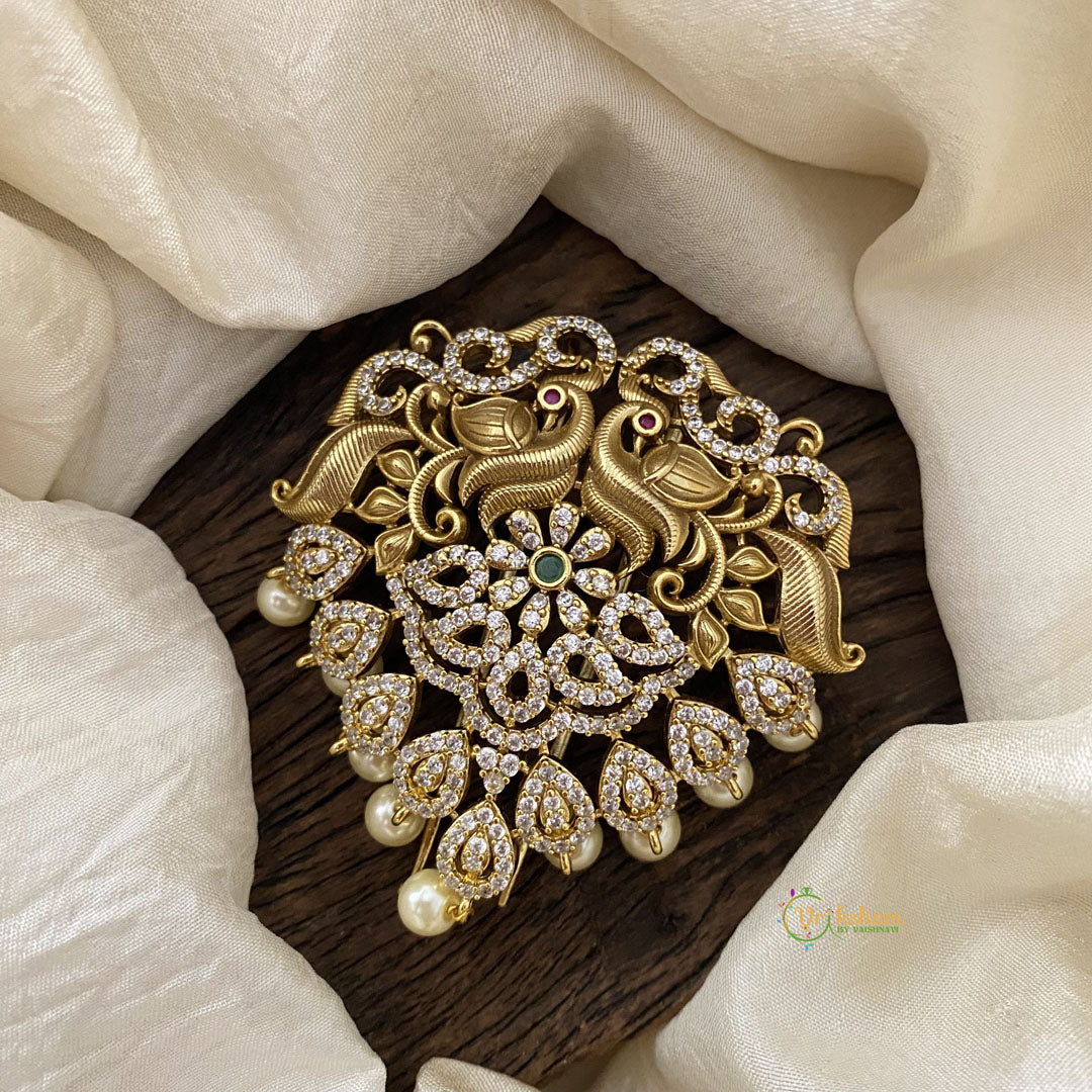 Unique AD Stone Bun Billai-Green- hair accessory for festive braids hairstyling. Finishing done by green beads and with touch of white and one big green stones.