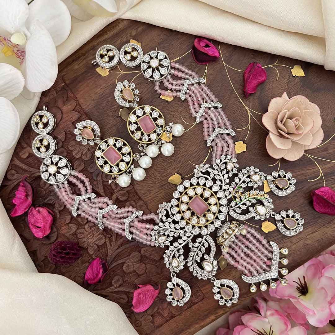 Elevate your fashion game with our Unique Designer Multilayer Victorian Diamond Short Neckpiece. Made with high-quality white Victorian Diamond pendant and multilayer beads, this neckpiece will add a touch of elegance and sophistication to any outfit. Stand out from the crowd and make a statement with this one-of-a-kind design. Comes with matching earrings.