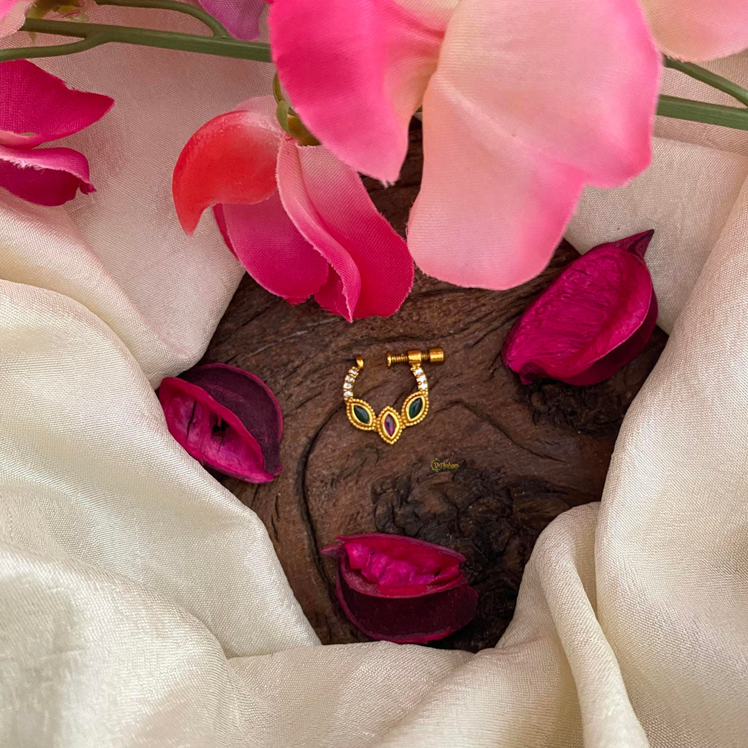 Unique Green Red AD Stone Nath / Nose pin-Leaf-G13977