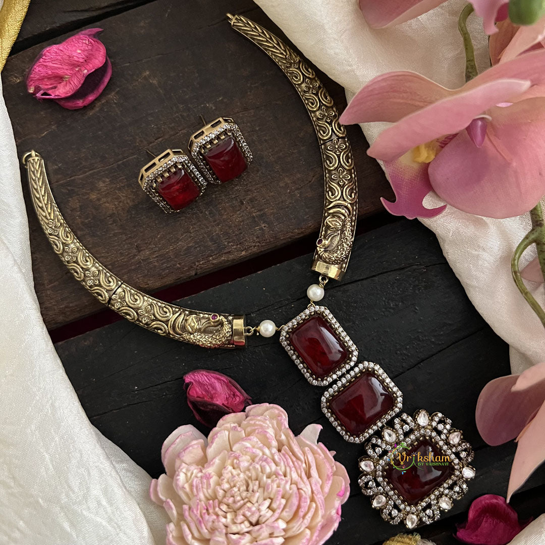 This elegant Unique Maroon Victorian Diamond Pendant Hasli is the perfect addition to your jewelry collection. The intricate Victorian design adorned with sparkling diamonds will add a touch of sophistication and glamour to any outfit. Elevate your style with this one-of-a-kind pendant now. Comes with matching earrings.