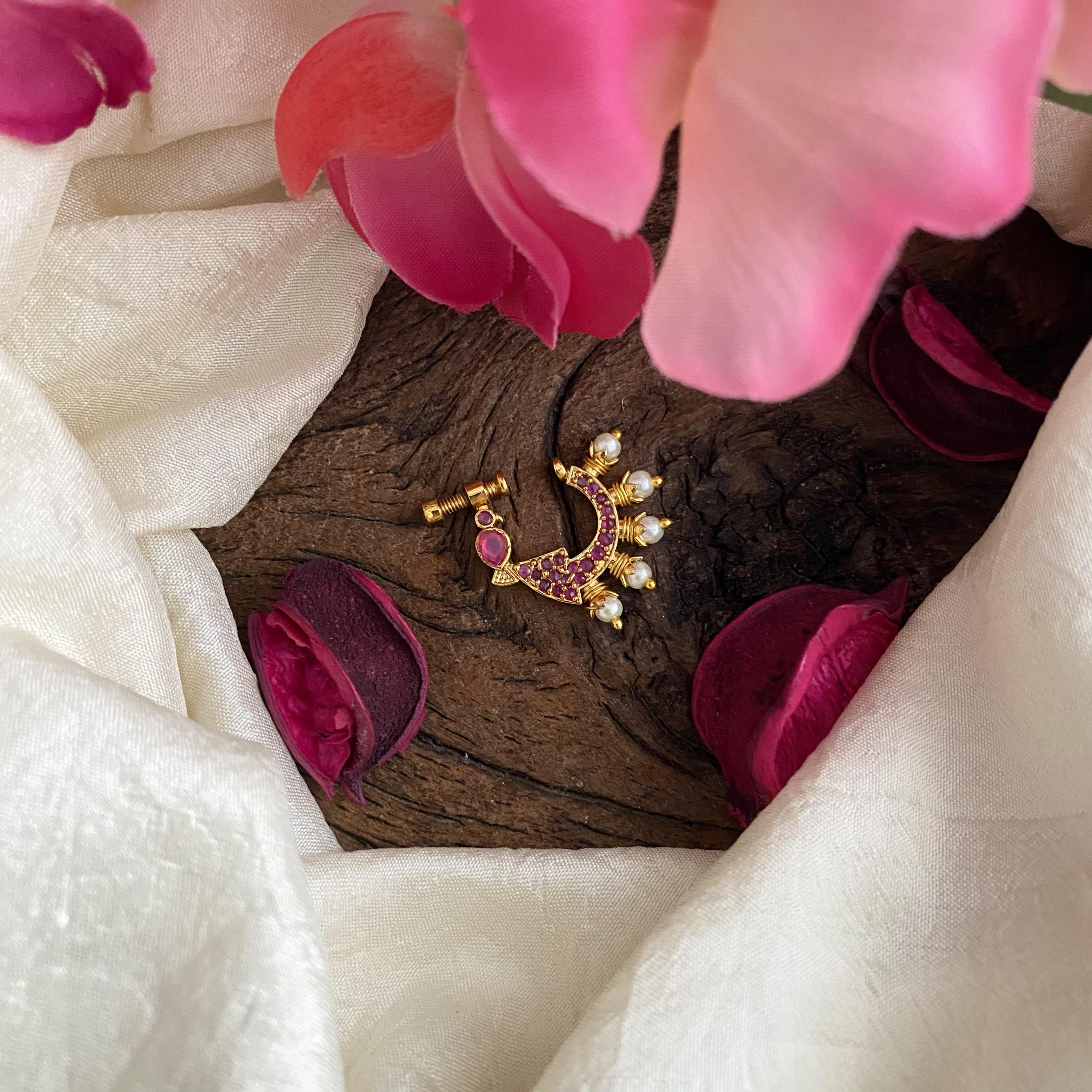 Elevate your style with our Unique AD Stone Nath/Nose Pin. Crafted with dazzling ad stones, this piece adds a touch of sophistication to any outfit. Make a statement and shine in luxury.