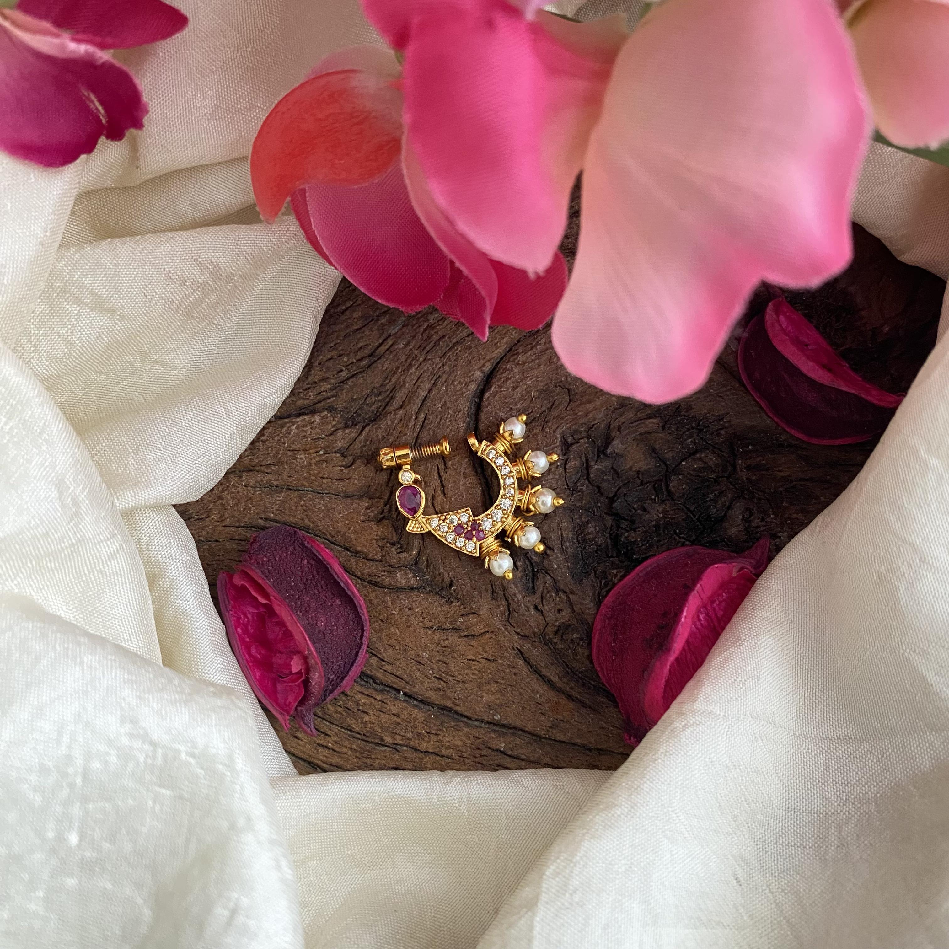 Elevate your style with our Unique AD Stone Nath/Nose Pin. Crafted with dazzling ad stones, this piece adds a touch of sophistication to any outfit. Make a statement and shine in luxury.