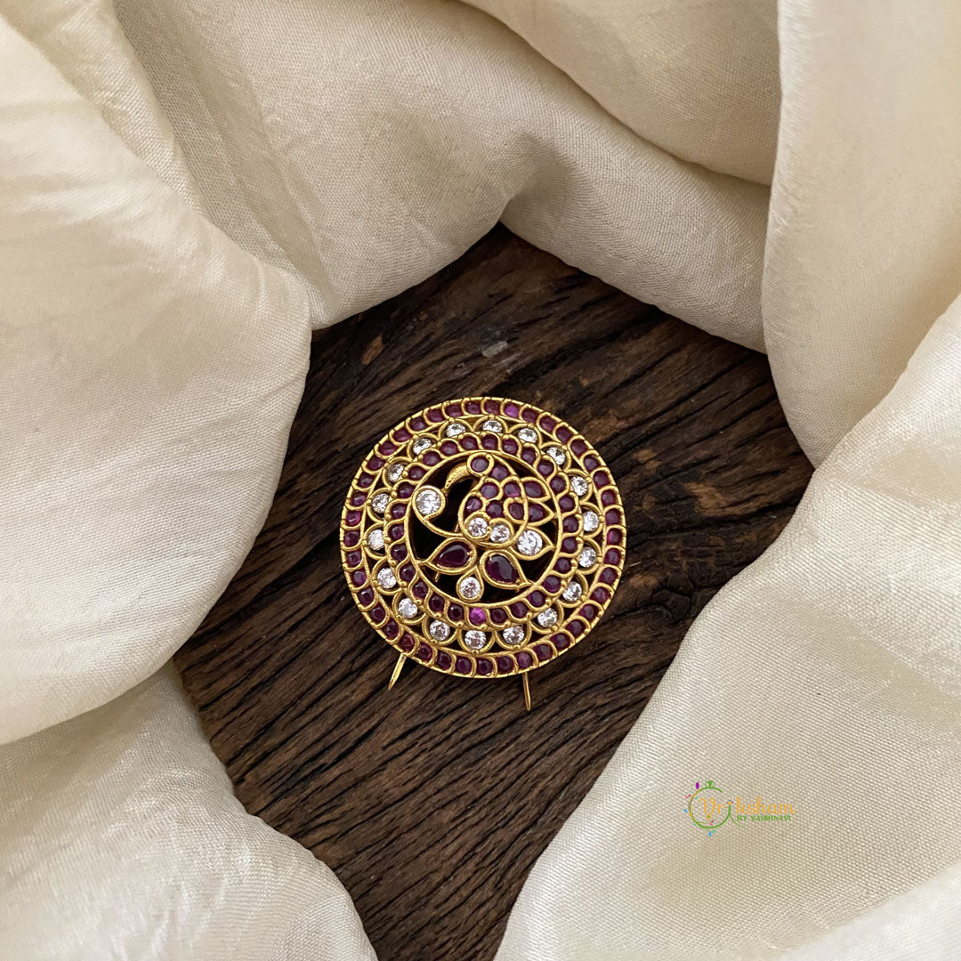 Unique Parrot Bun Billai-Red White - hair accessory for festive braids hairstyling. Finishing done with touch of red and white stones.