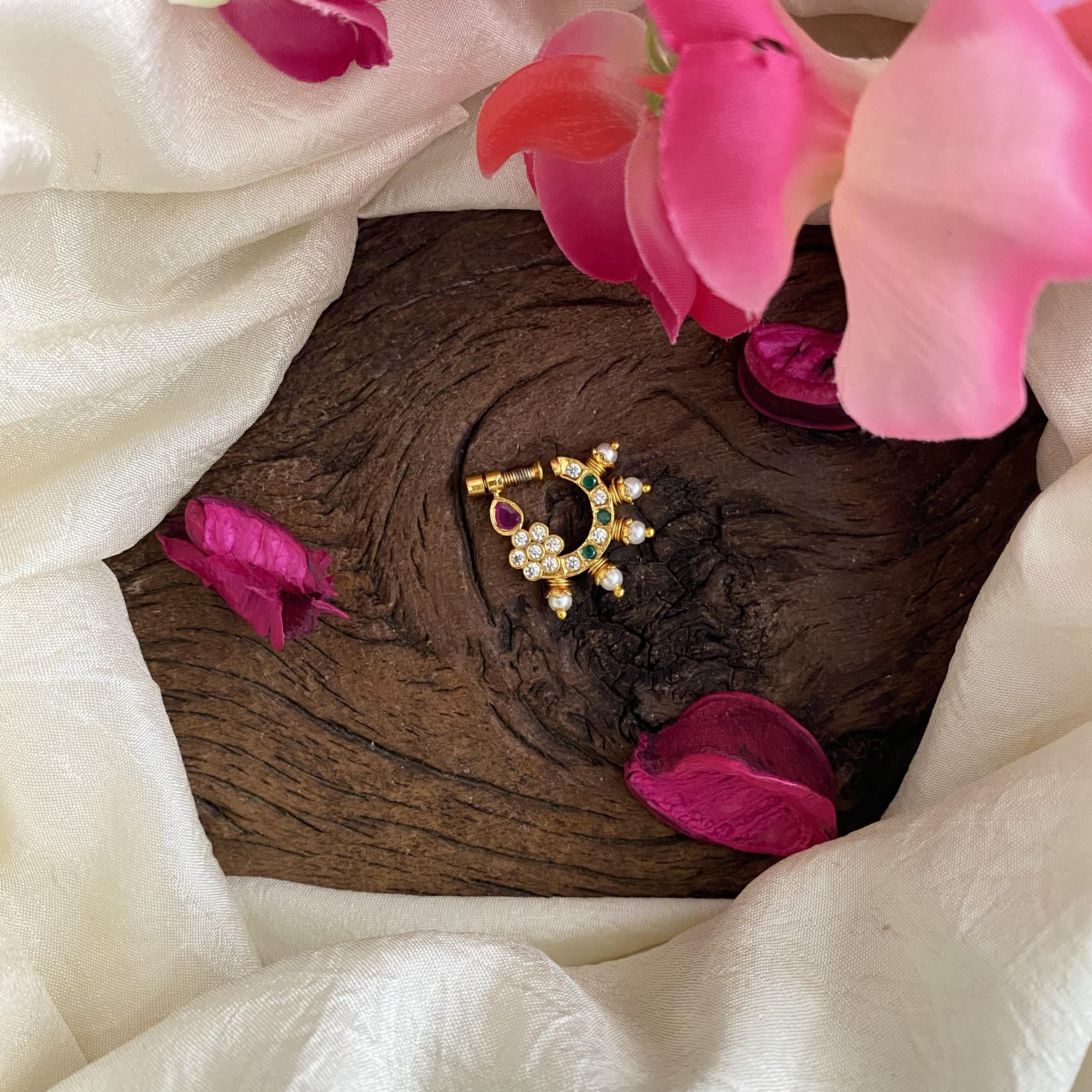 Elevate your style with our Unique AD Stone Nath/Nose Pin. Crafted with dazzling ad stones, this piece adds a touch of sophistication to any outfit. Make a statement and shine in luxury.
