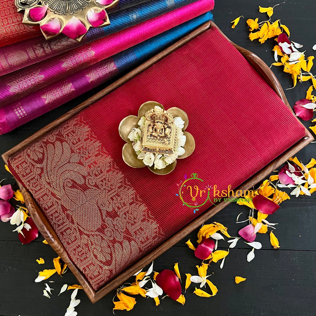 Red with Gold Vairaoosi Silk Cotton Saree .- Festive wear saree – Vairaoosi Pattern throughout the saree; comes with Blouse attached. Two side contrast border and pallu.