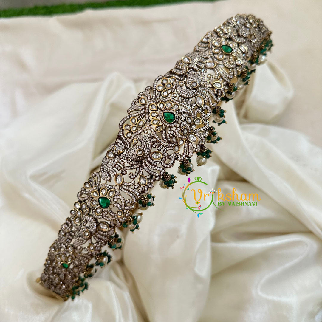 Premium Victorian Diamond Bridal Hipbelt -Green and white precious stone studded royal jewelry; adept for bridal wear.