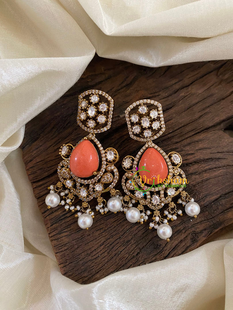 Orange Victorian Diamond Danglers -VV895