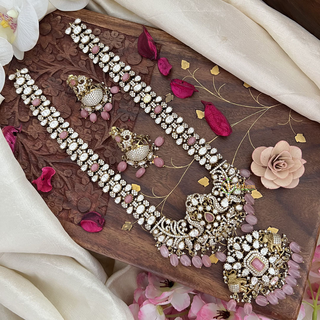 Indulge in luxury with our Victorian Diamond Elephant Pendant Neckpiece Baby Pink adorned with shimmering diamonds. The Victorian-inspired design adds a touch of elegance to any outfit. Treat yourself to a piece of timeless beauty that will elevate your style. Perfect for special occasions or everyday wear.