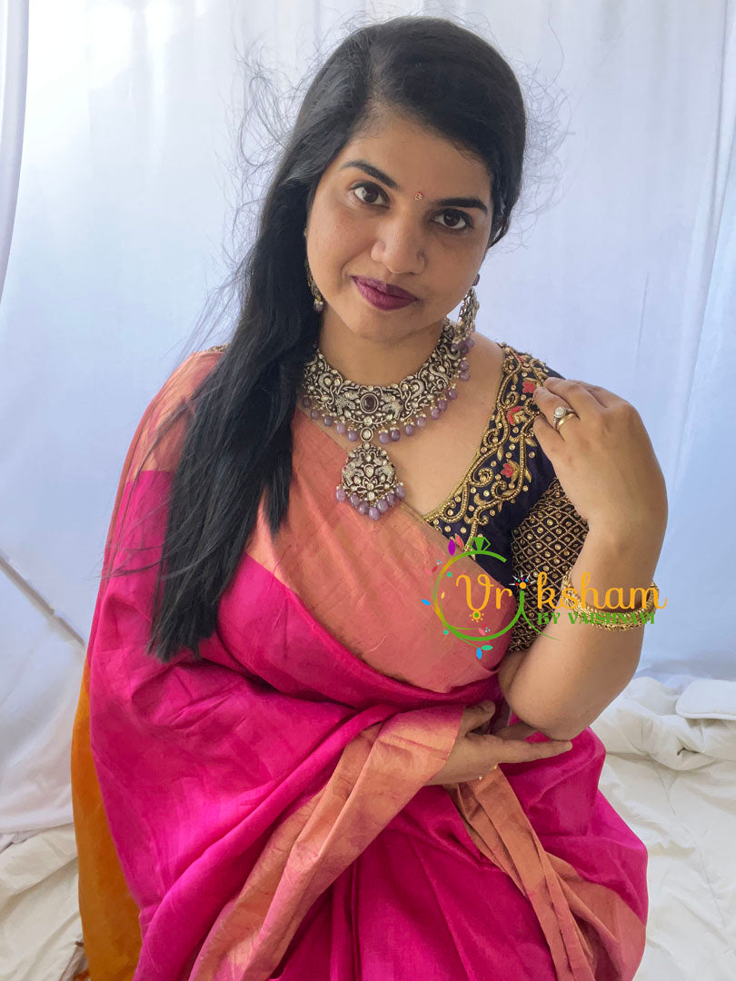 Victorian Diamond High Neck Choker-Lavender- - Purple and White precious stone studded lavender bead finish royal jewelry; comes with matching earrings.