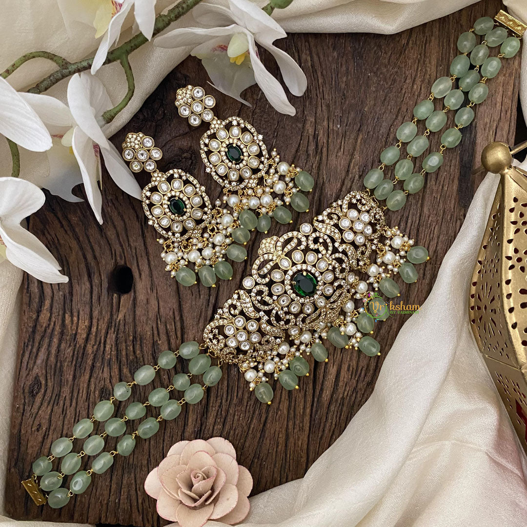 Victorian Diamond High Neck Choker - precious stone studded BEAD royal jewelry; comes with matching earrings.