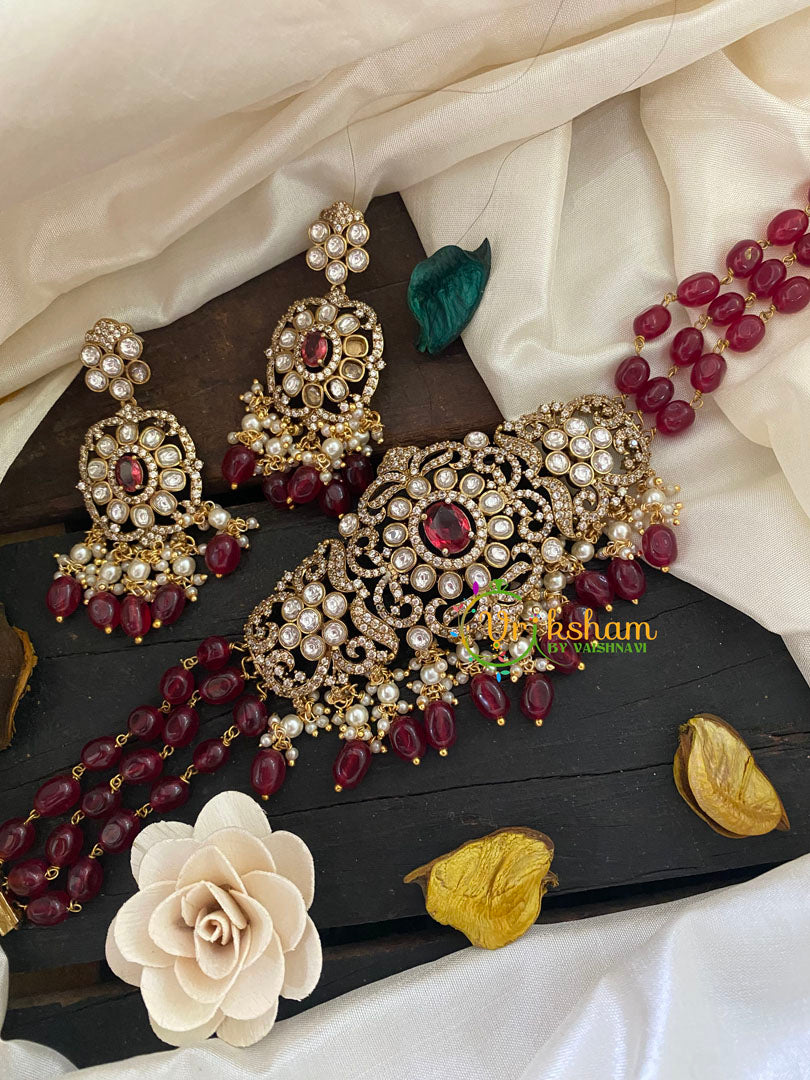 Victorian Diamond High Neck Choker - precious stone studded BEAD royal jewelry; comes with matching earrings.