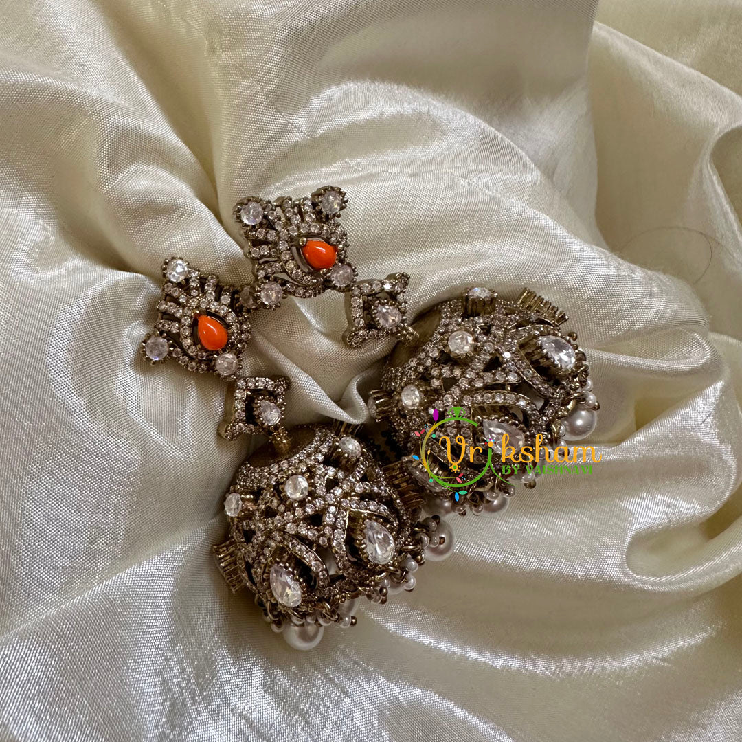 Victorian Diamond Jhumkas - festive danglers - Victorian Diamond Earrings -semi precious stone set; bead or Pearl finish jhumkas.