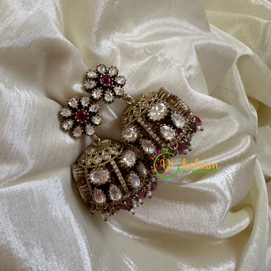 Victorian Diamond Jhumkas - festive danglers - Victorian Diamond Earrings -semi precious stone set; bead or Pearl finish jhumkas.