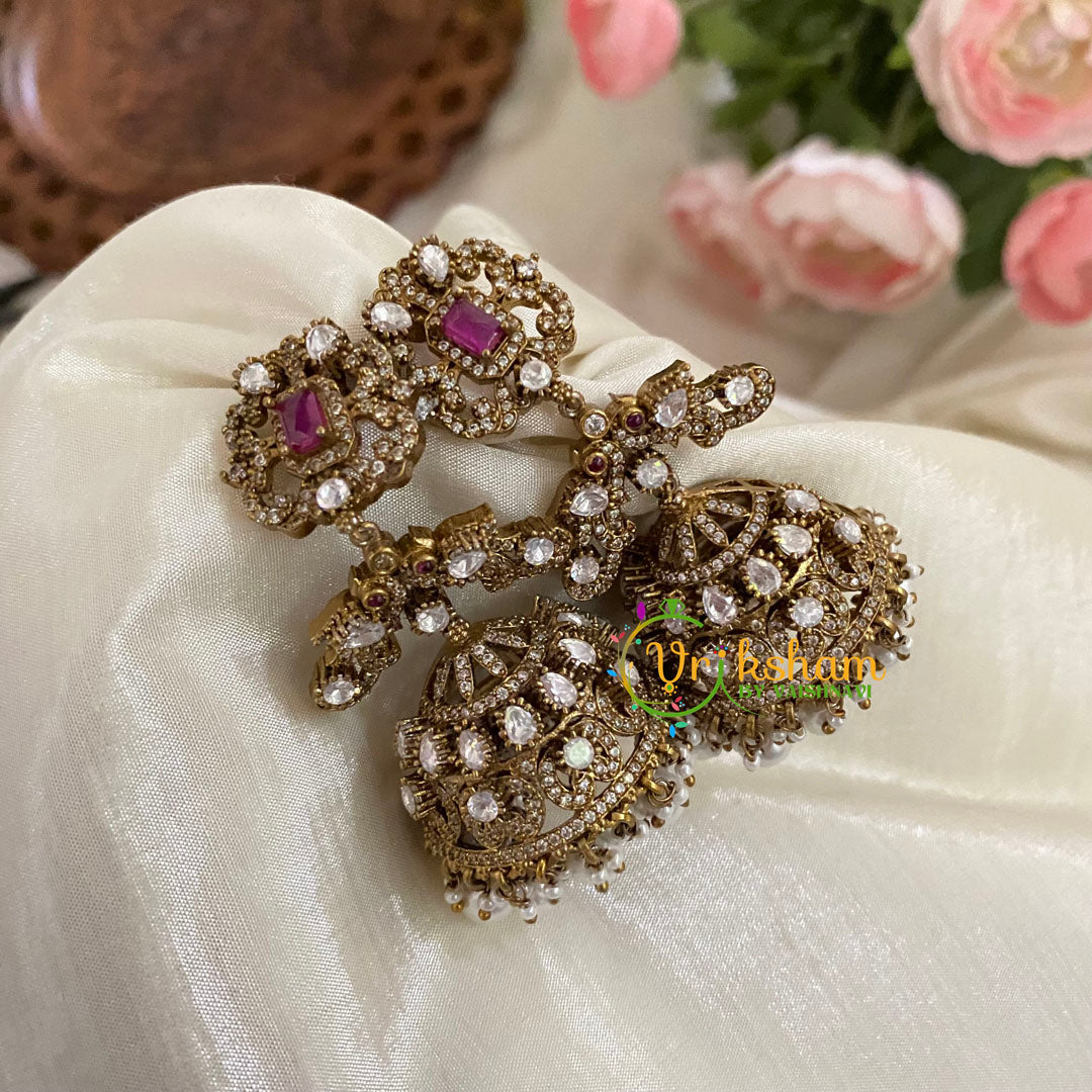 Victorian Diamond Jhumkas - festive danglers - Victorian Diamond Earrings -semi precious stone set jhumkas.