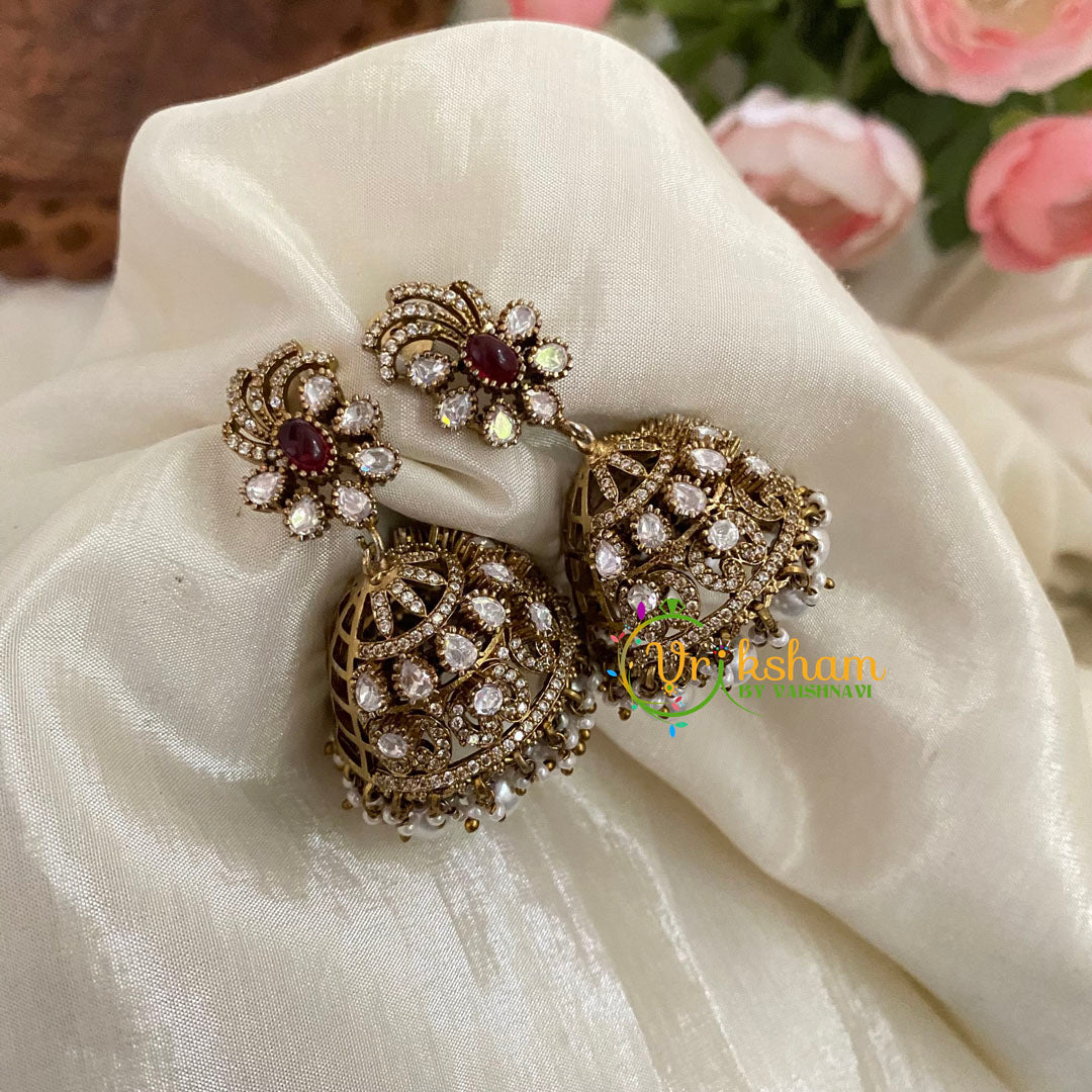 Victorian Diamond Jhumkas - festive danglers - Victorian Diamond Earrings -semi precious stone set jhumkas.