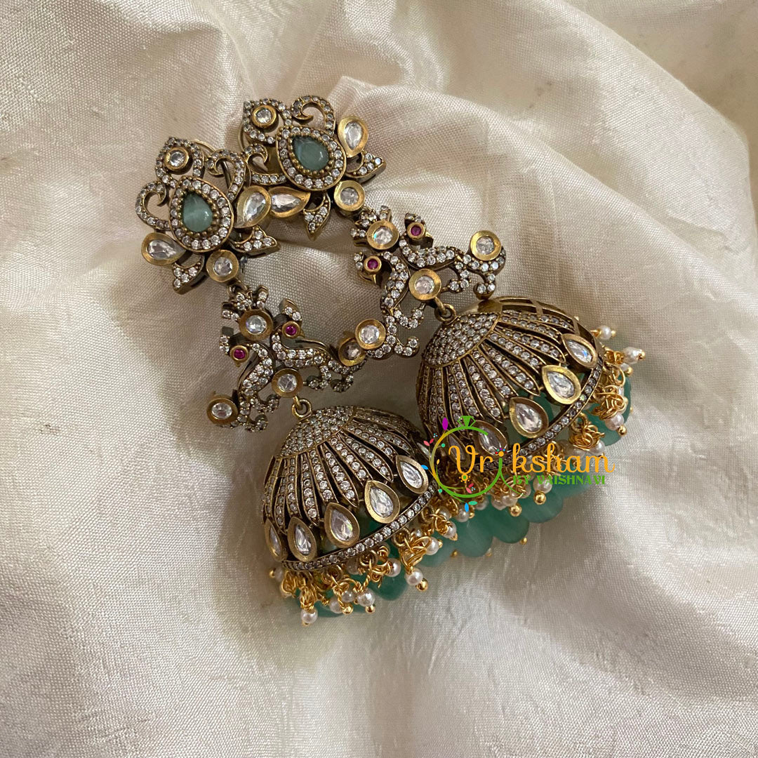 Pastel Green Victorian Diamond Jhumkas -VV793