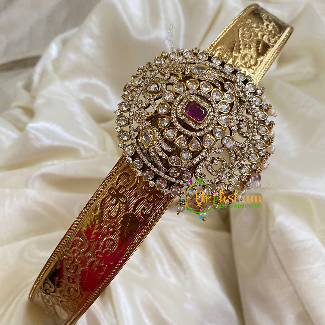 Premium Victorian Diamond Pendant Hipbelt - white precious stone studdedd royal jewelry; adept for bridal wear.