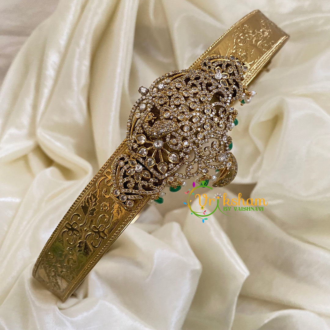 Premium Victorian Diamond Pendant Hipbelt - white precious stone studdedd royal jewelry; adept for bridal wear.