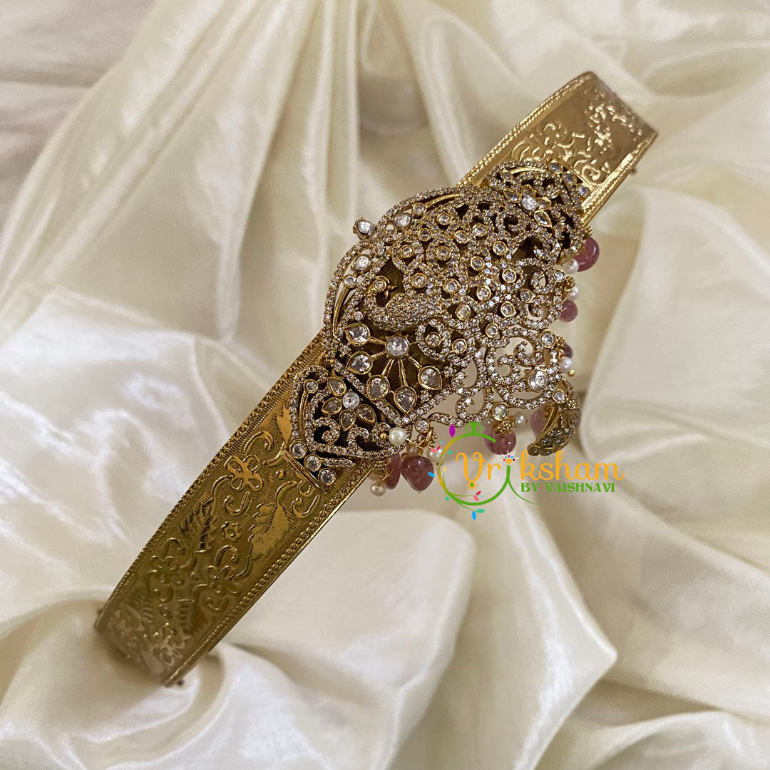 Premium Victorian Diamond Pendant Hipbelt - white precious stone studdedd royal jewelry; adept for bridal wear.