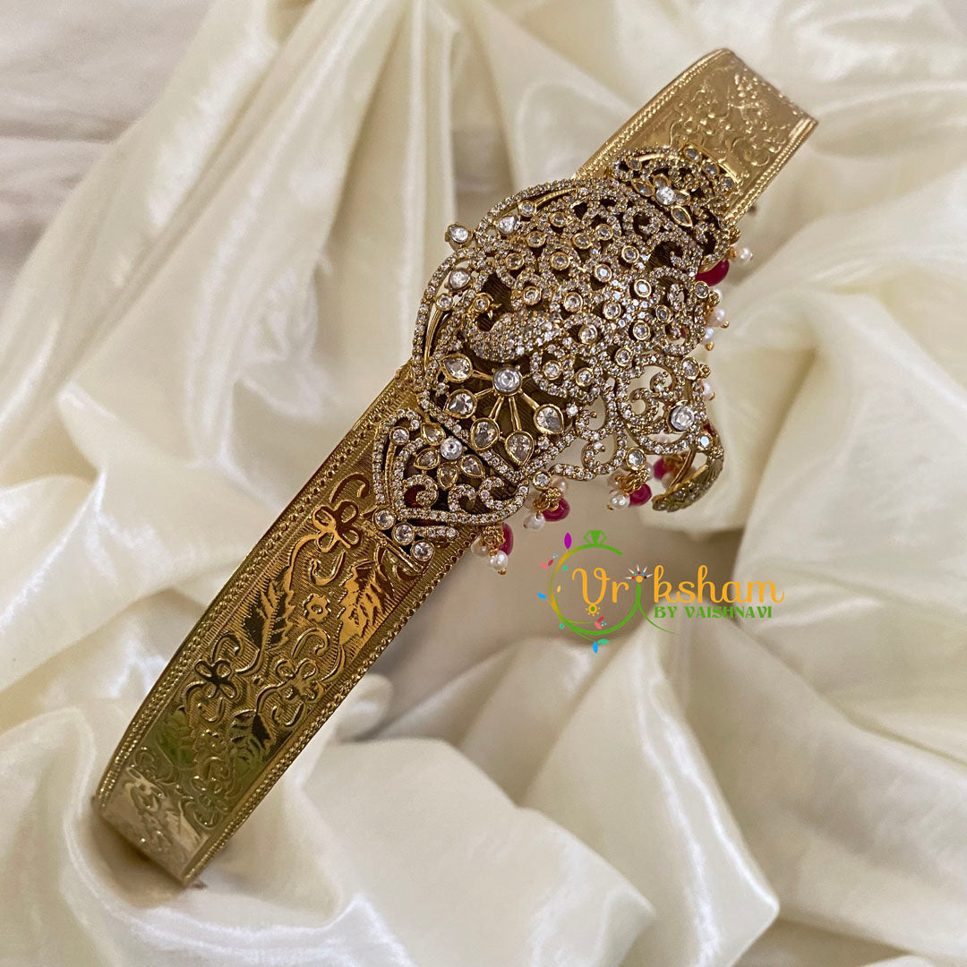 Premium Victorian Diamond Pendant Hipbelt - white precious stone studdedd royal jewelry; adept for bridal wear.