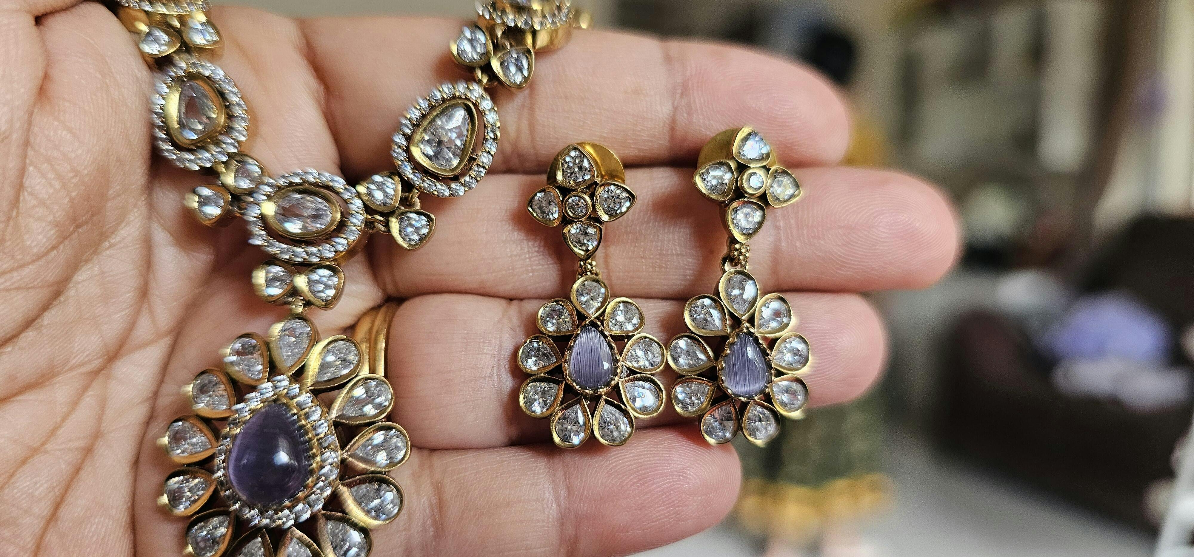 Premium Victorian Diamond Short Neckpiece -semi precious stone studded ; royal statement jewelry; comes with matching earrings.