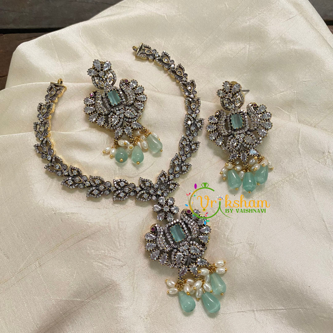 Victorian Diamond Short Neckpiece - semi precious stone studded neckpiece ; comes with matching earrings.