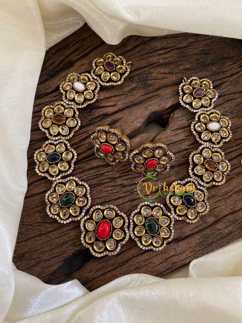 Premium Victorian Diamond Short Neckpiece -no pendant white and color semi precious stone studded ; royal statement jewelry; comes with matching earrings.