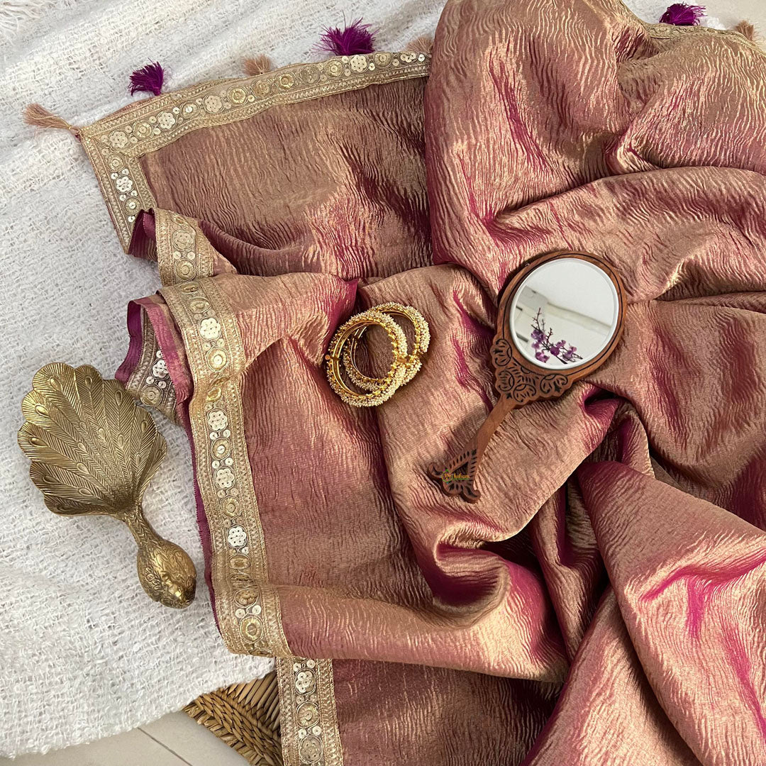 Be the center of attention in our Magenta Crush Organza Saree! This handloom saree features a double stunning shade and is adorned with a golden designer lace and tassels on the pallu. Stand out and make a statement with this elegant and stylish saree. Perfect for any occasion, our saree will make you feel confident and beautiful. Elevate your traditional wardrobe today!