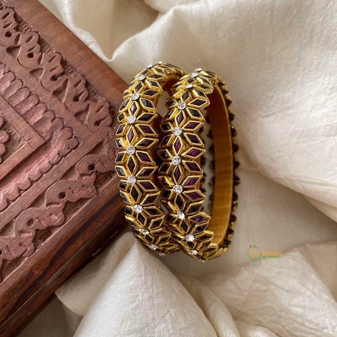 Violet Silk Thread Kundan Bangle -Diced Flower - kundan stone (glossy stone) festive bangles , Comes as 2 bangles only.