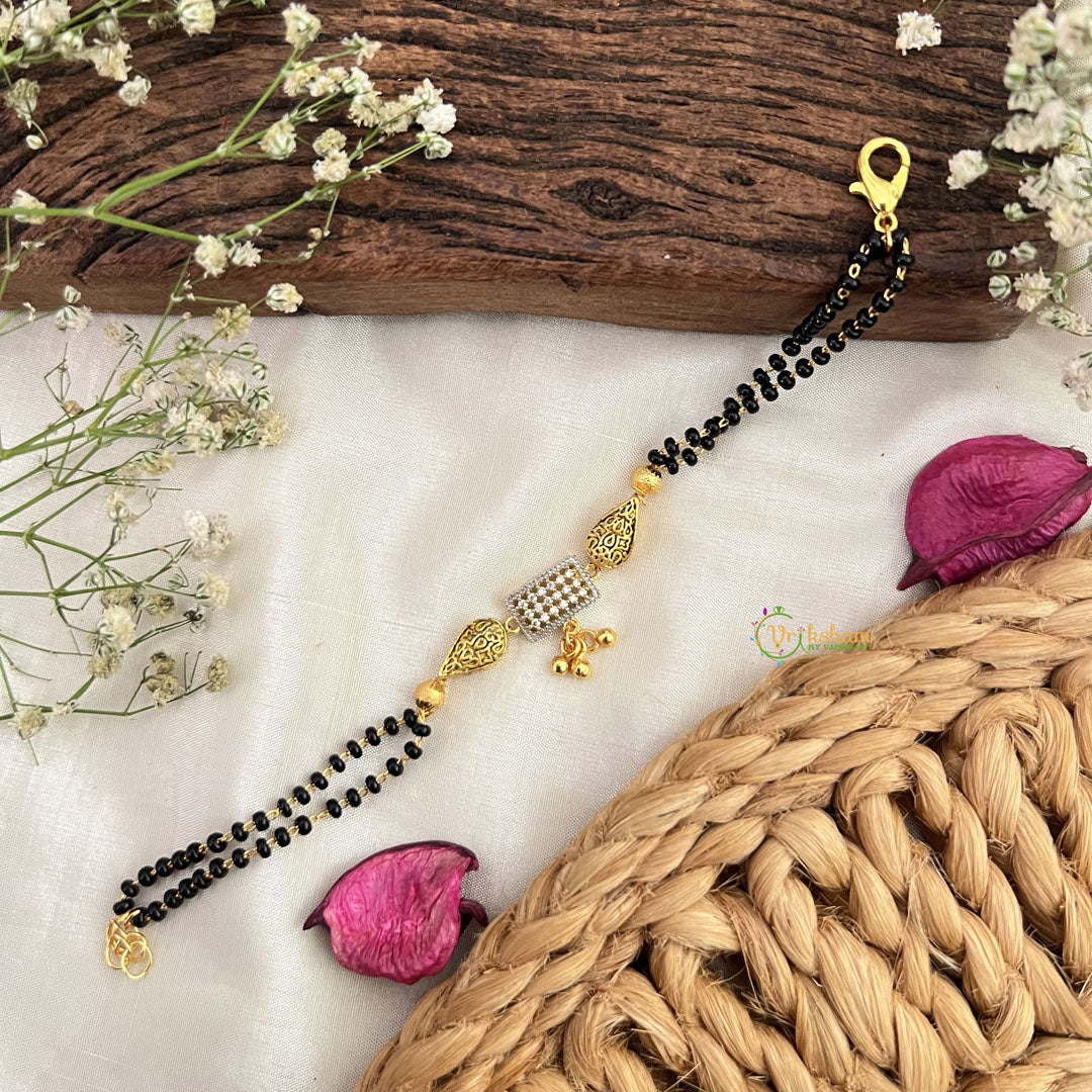 The Vriksham AD Stone Rectangular with Two Drop Mangalsutra Bracelet features a sleek rectangular design accented by two elegant drop-shaped elements. Adorned with shimmering AD stones, this sophisticated bracelet blends contemporary style with traditional charm, adding a refined sparkle to your ensemble for any occasion.