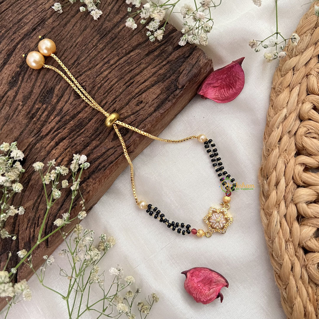 For more such pieces visit, https://vrikshamindia.com/products/vriksham-designer-ad-stone-flower-mangalsutra-bracelet