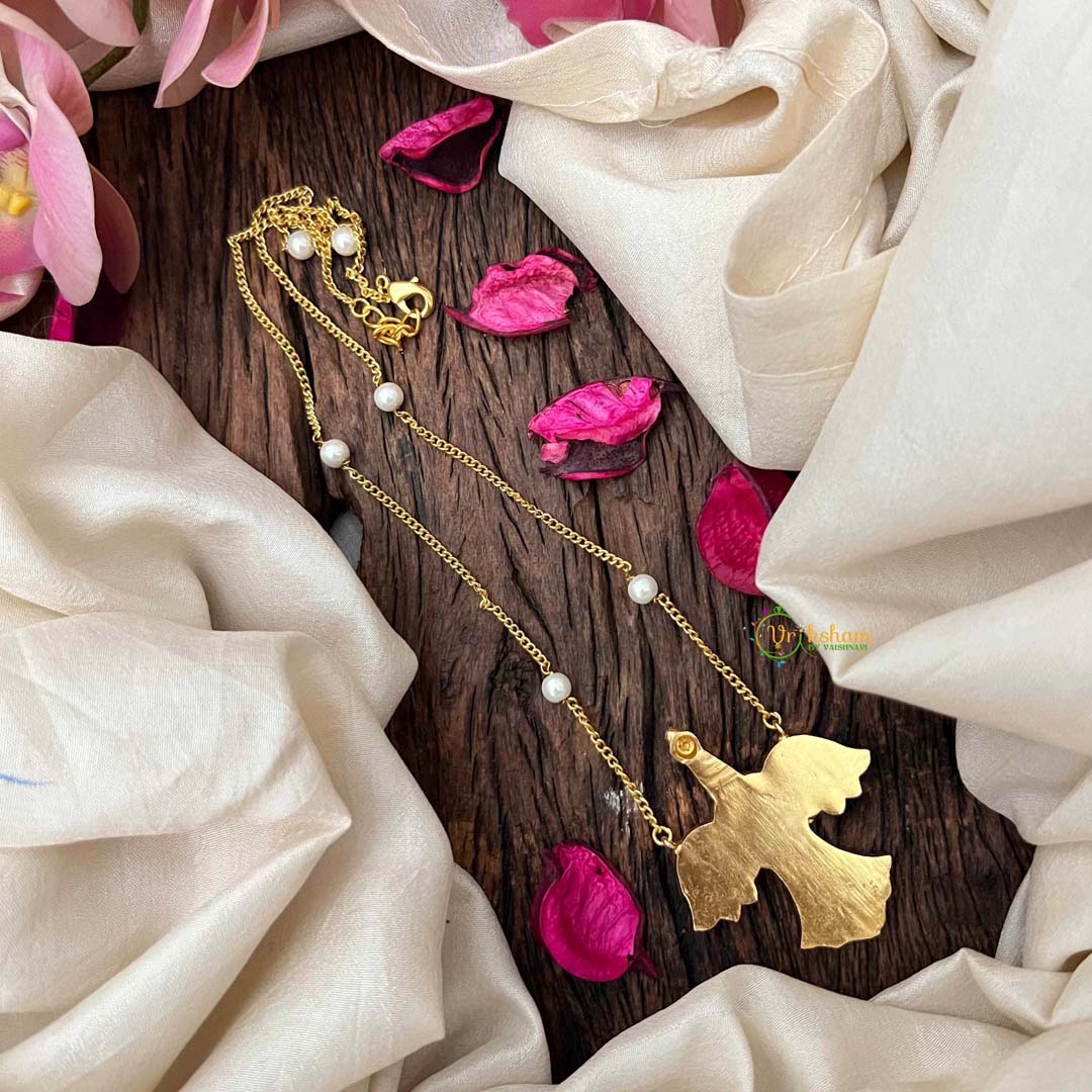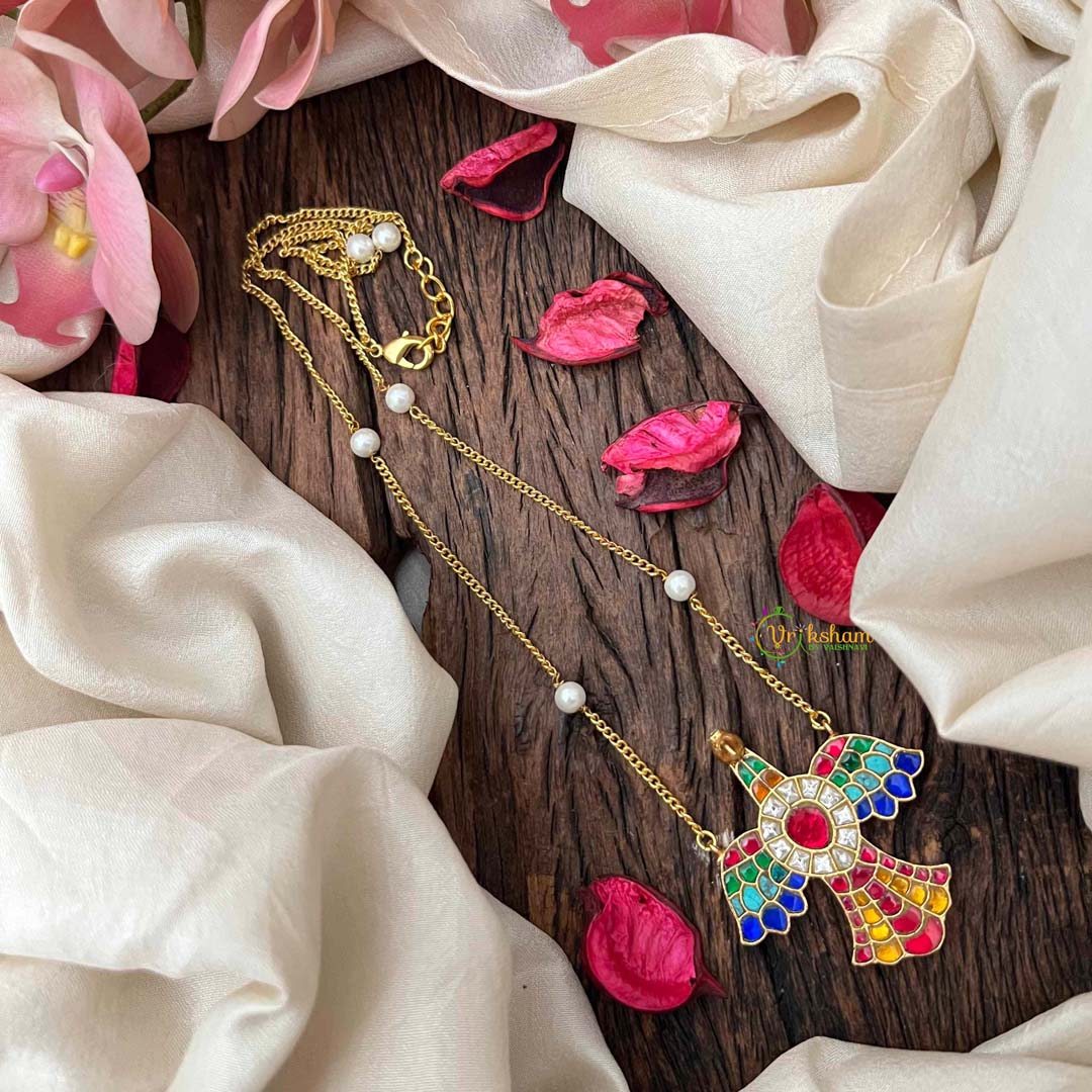 Elevate your jewelry collection with this stunning alabaster pendant necklace, where intricate bird motifs celebrate the mythical Garudabenda in a harmonious blend of multi-colored stones. Pearl accents dance across the surface, adding luminous sophistication to the rich gemstone composition. Each piece is meticulously handcrafted to honor traditional artistry while embracing modern design sensibilities. A captivating accessory for those who appreciate jewelry that transcends mere adornment, offering both visual splendor and profound cultural resonance.