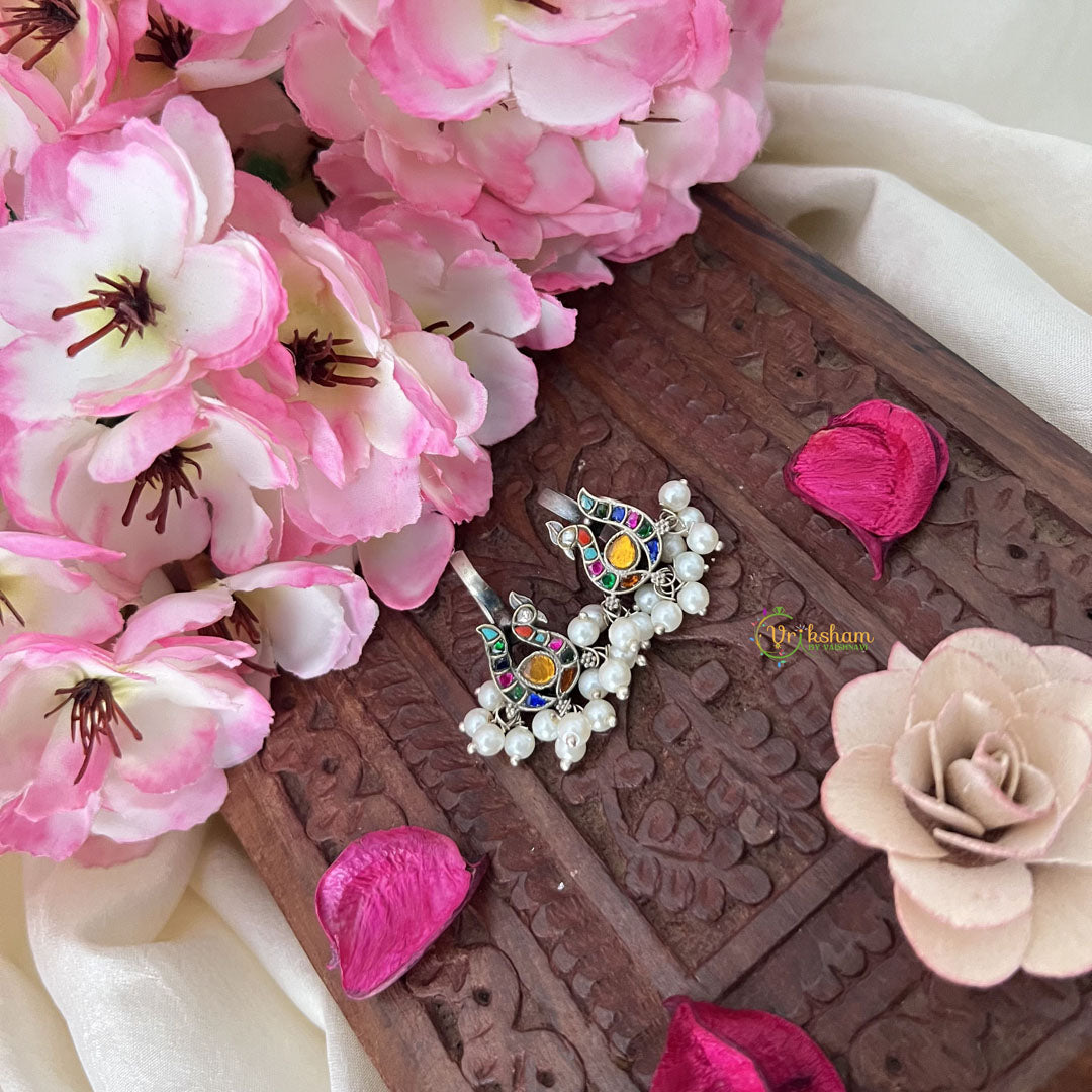 Immerse yourself in cultural elegance with our Annam Style Maharashtrian Press Bugadi. The enchanting interplay of tranquil multicolor and pristine white beads creates a statement piece that honors tradition while embracing refined aesthetics. Expertly crafted with attention to detail, this distinctive ear ornament captures the essence of Maharashtrian heritage. The symbolic Annam design element adds depth and meaning, making this accessory an exquisite choice for celebrations, traditional ceremonies, or whenever you wish to elevate your ensemble with sophisticated cultural artistry.