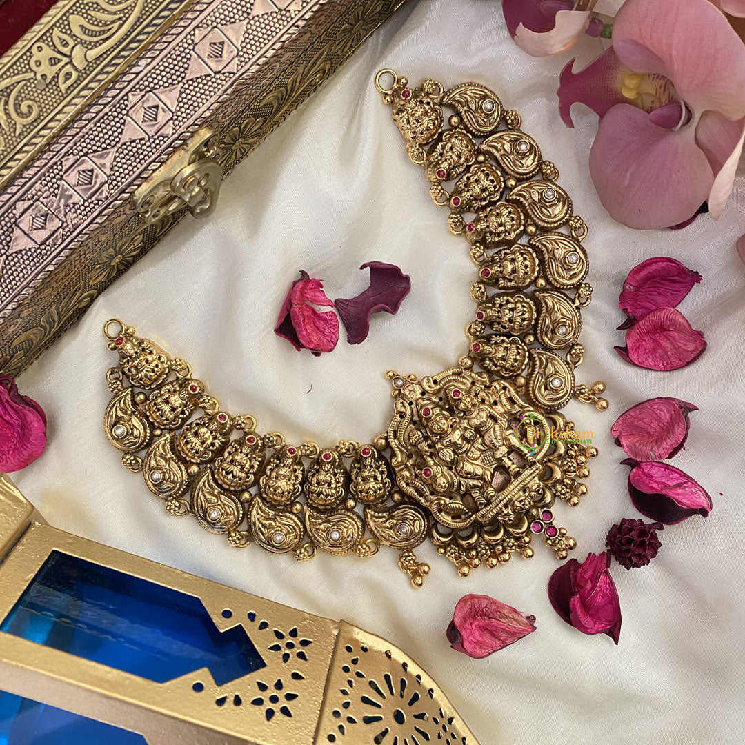 Experience elegance and sophistication with our Vriksham Antique 1 gm Gold Shiv Parvati Pendant Short Neckpiece. Made from the finest quality materials, this exquisite necklace features a stunning pendant depicting the divine couple, Shiv and Parvati. Add a touch of luxury to any outfit with this unique piece.