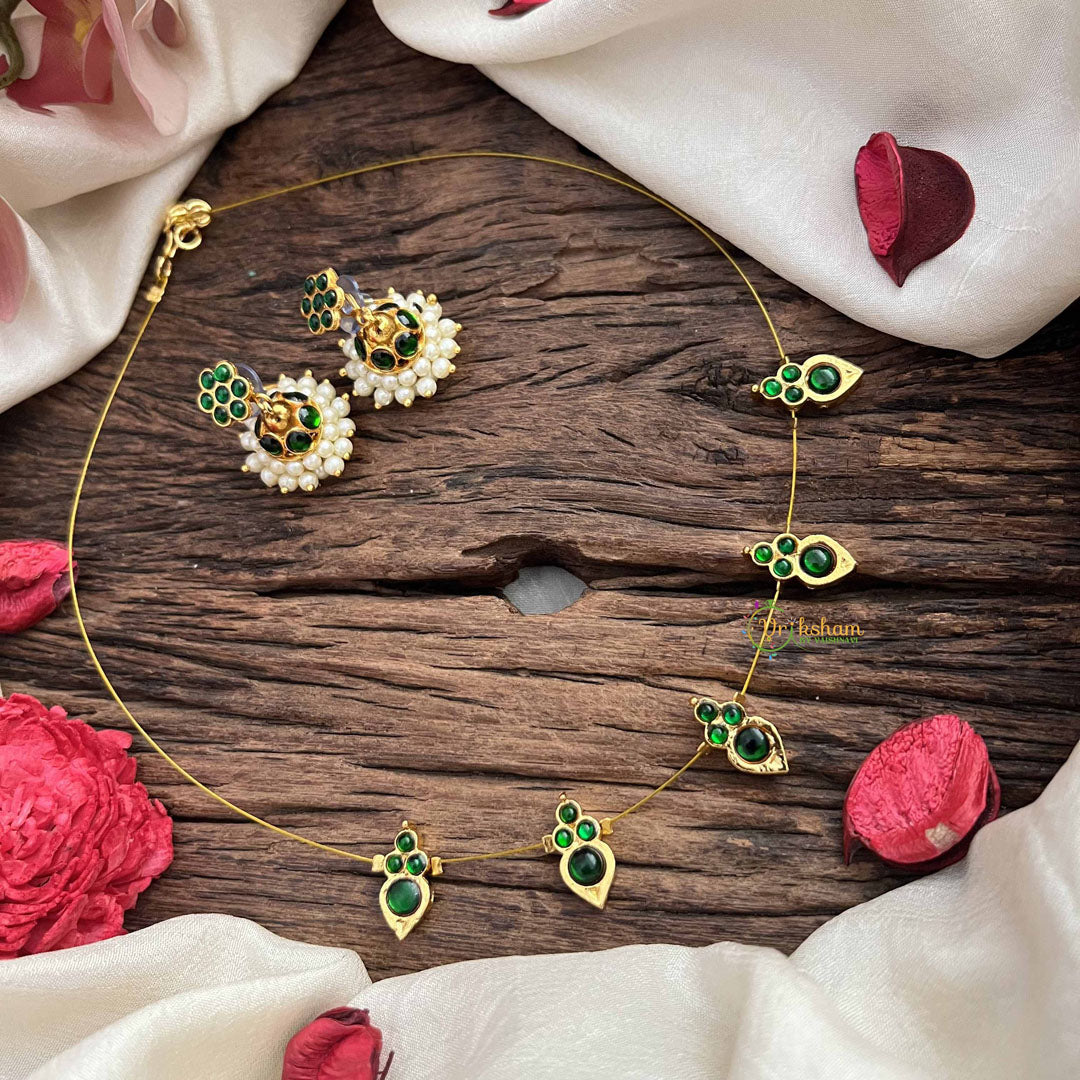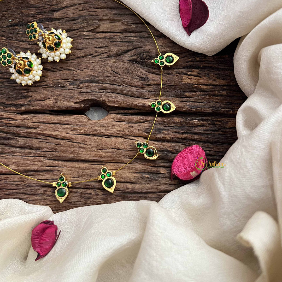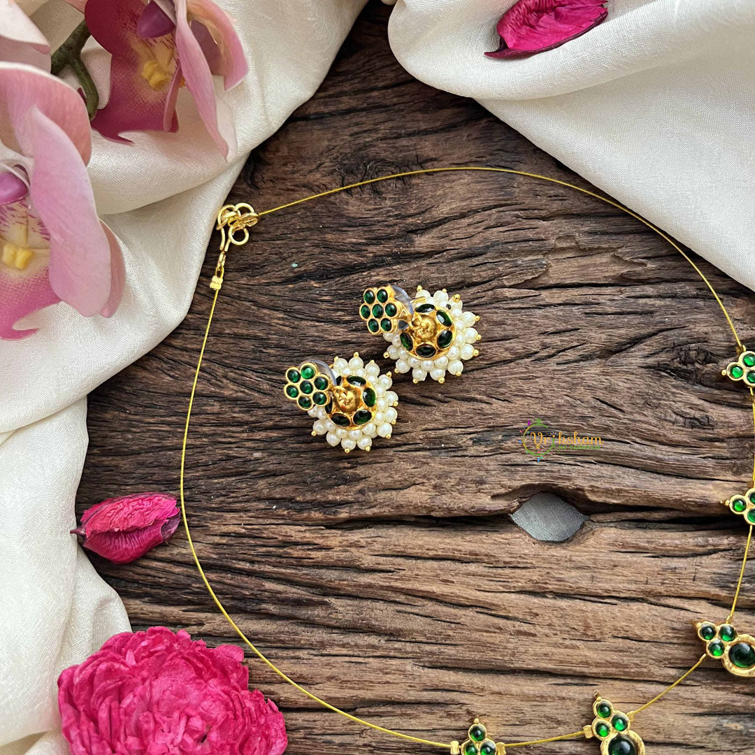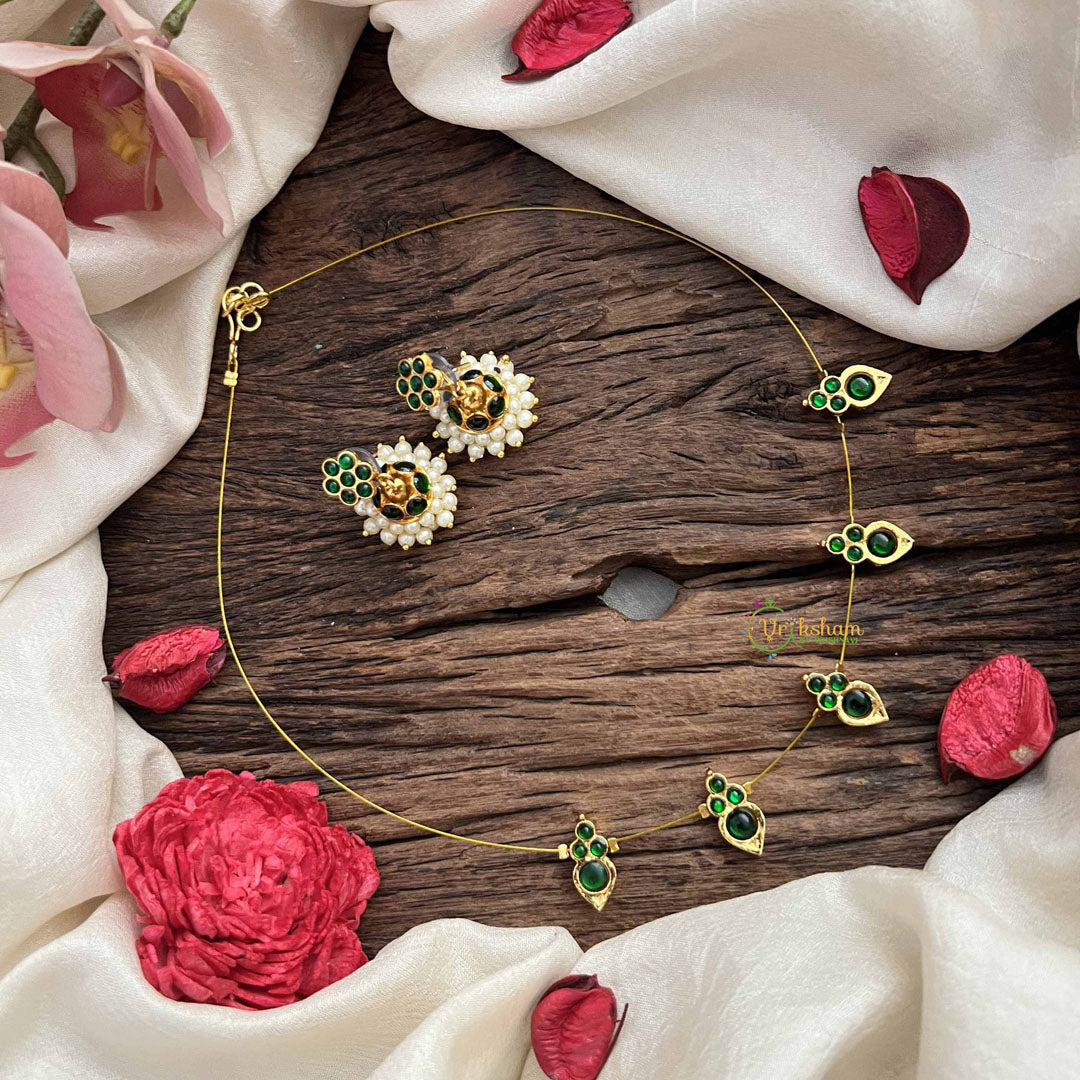 Vriksham Antique 5 Leaf Pendant Invisible Chain-Green-G20623