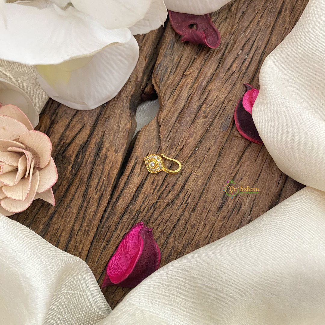 Indulge in the timeless elegance of our Vriksham Antique AD Stone Nath/Nose pin. Crafted with intricate details and adorned with stunning white stones, it adds a touch of luxury to any look. Perfect for any occasion, this piece embodies sophistication and style. Elevate your accessory game with this exclusive, must-have piece.