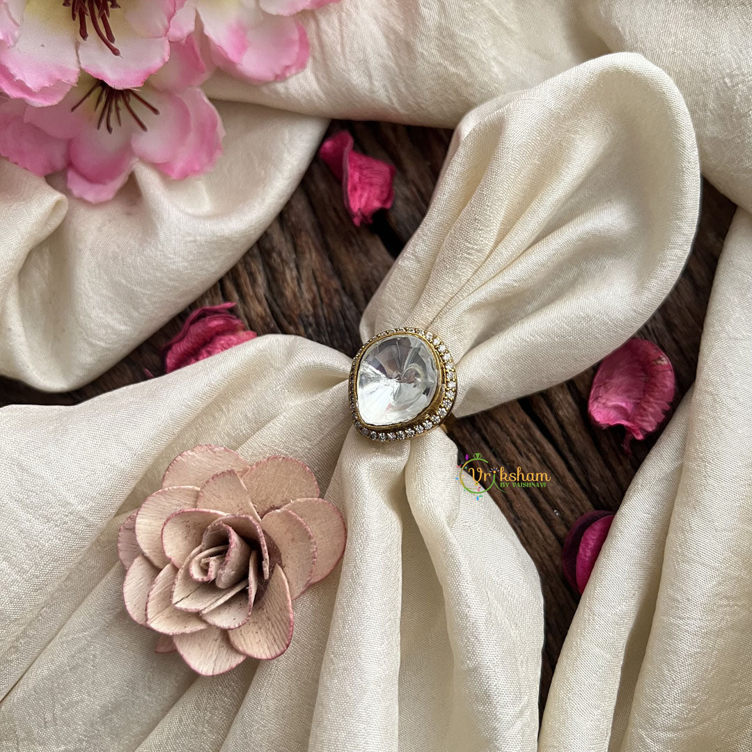 The Vriksham Antique Designer Center Mossanite Stone Finger Ring features a captivating mossanite stone artfully set at its center within a vintage-inspired design. This sophisticated ring blends classic elegance with timeless craftsmanship, making it a refined accessory for those who appreciate enduring beauty.