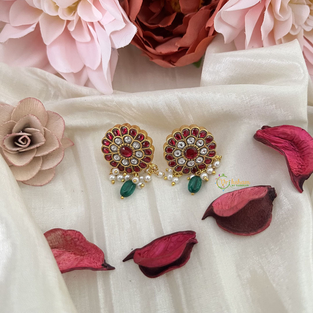 Embrace the essence of cultivated taste with Vriksham's Antique Floral Earrings. These distinguished ornaments feature an intricate floral design rendered in rich red and pristine white, elegantly adorned with luminous pearls and a refined green bead accent. The antiqued finish bestows a sense of heritage and timeless allure. Masterfully crafted for those who appreciate nuanced artistry, these earrings provide a subtle yet distinctive statement that complements both contemporary ensembles and traditional attire with understated sophistication.